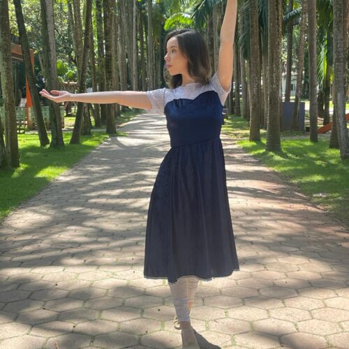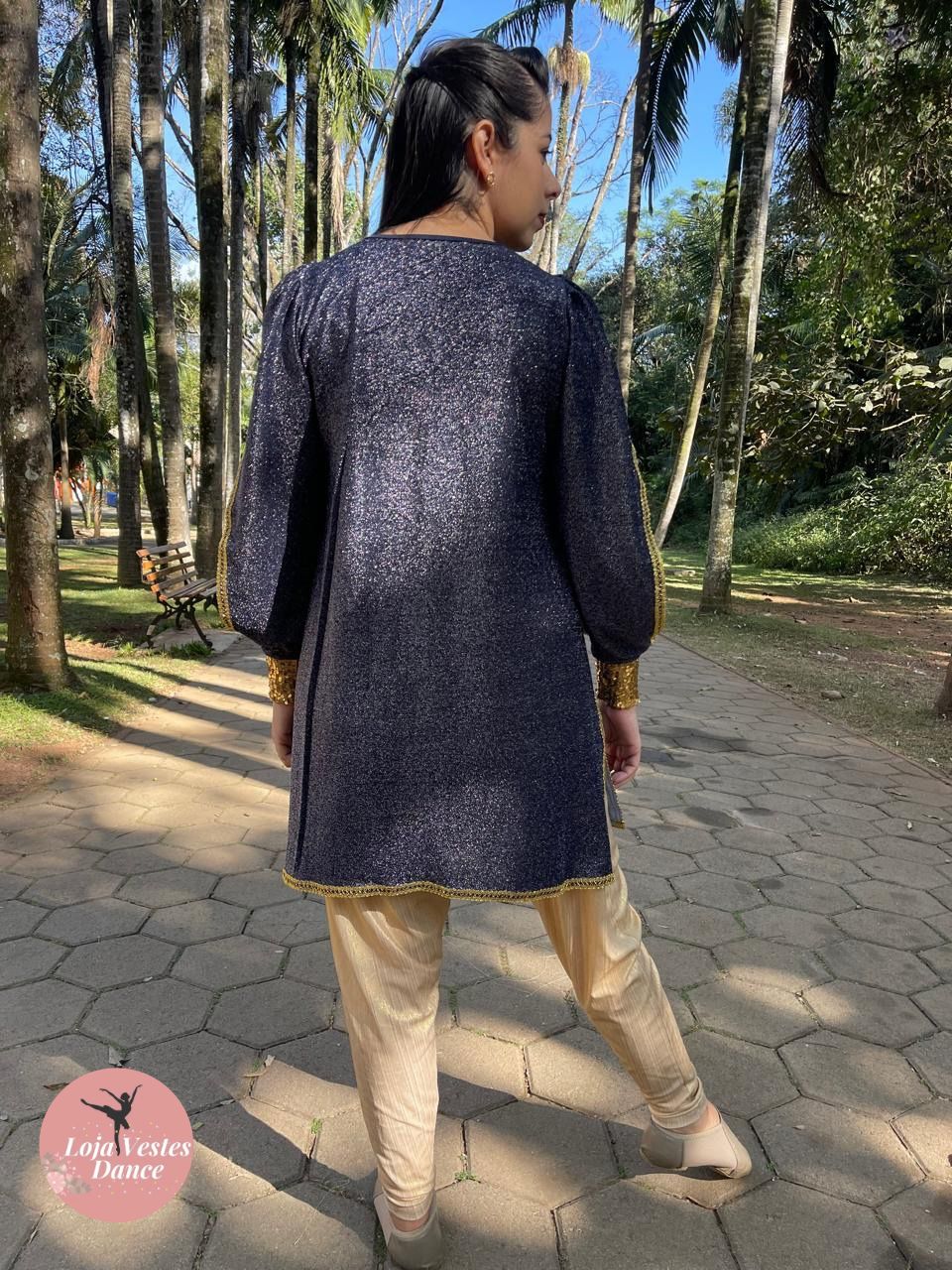 Mangas bufantes de lurex com abertura, punho de paitê e acabamento em aviamento.