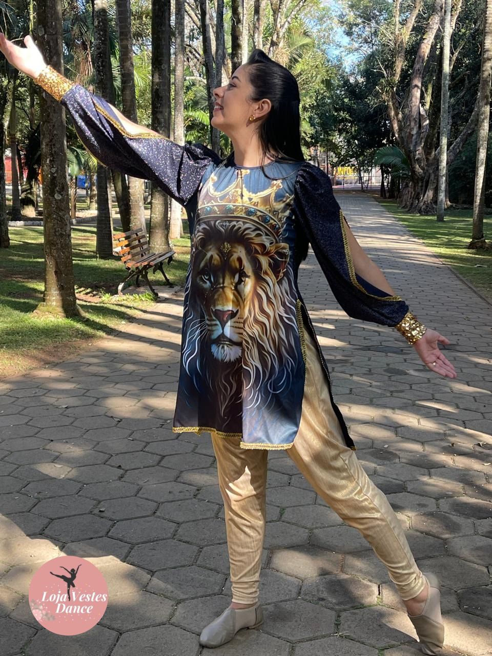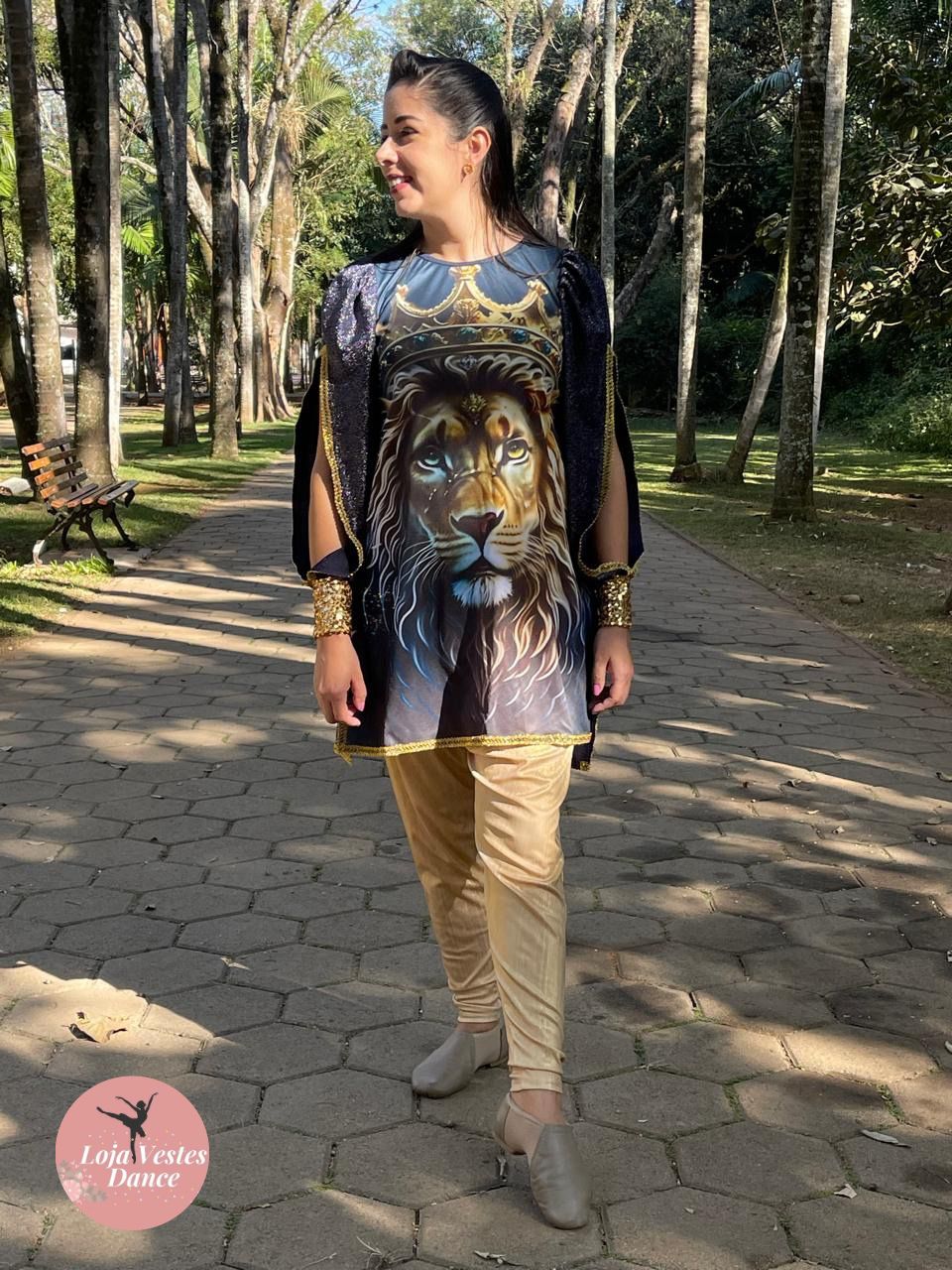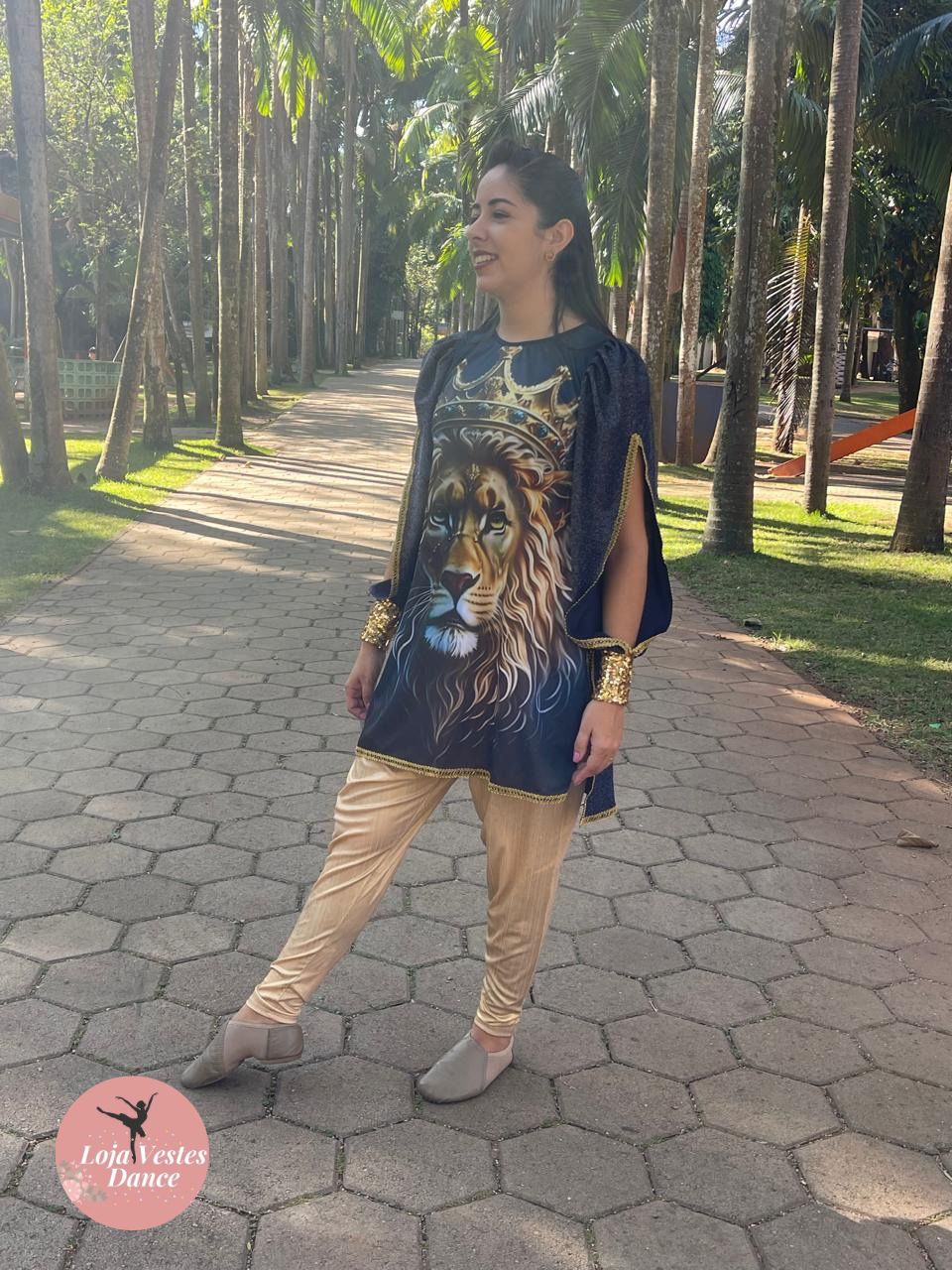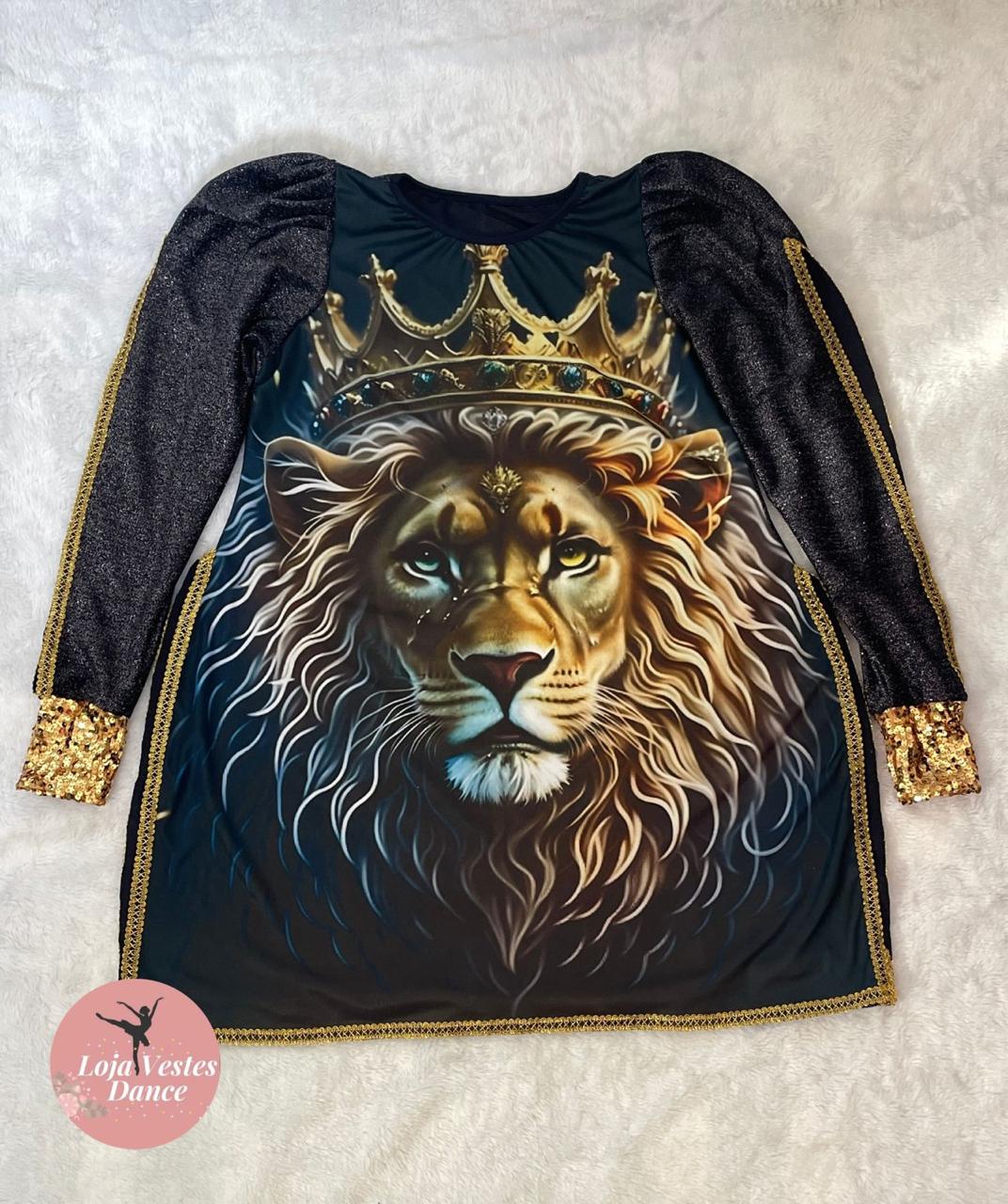 Bata com estampa de Leão e detalhes em aviamento, costas de lurex.