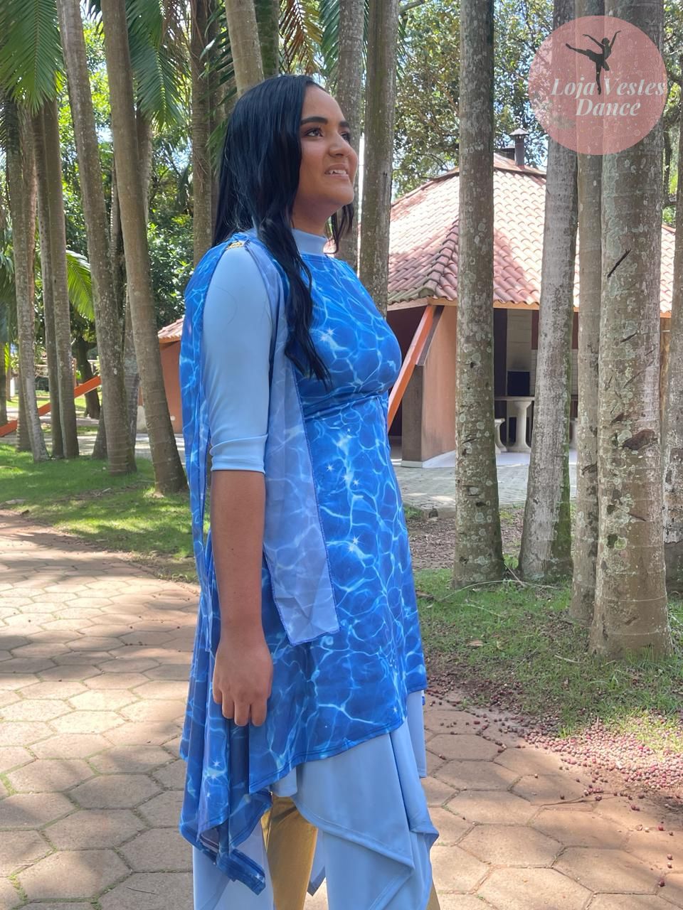 Bata feita de helanca estampado, com abertura nas laterais e botões.