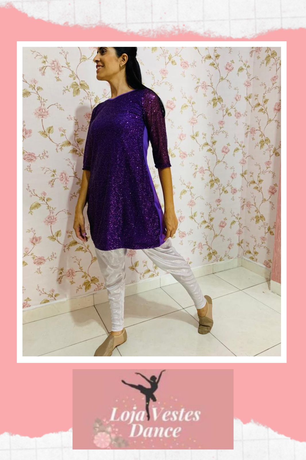 Bata de helanca com frente de tule cheio e mangas 3/4 de tule cheio.