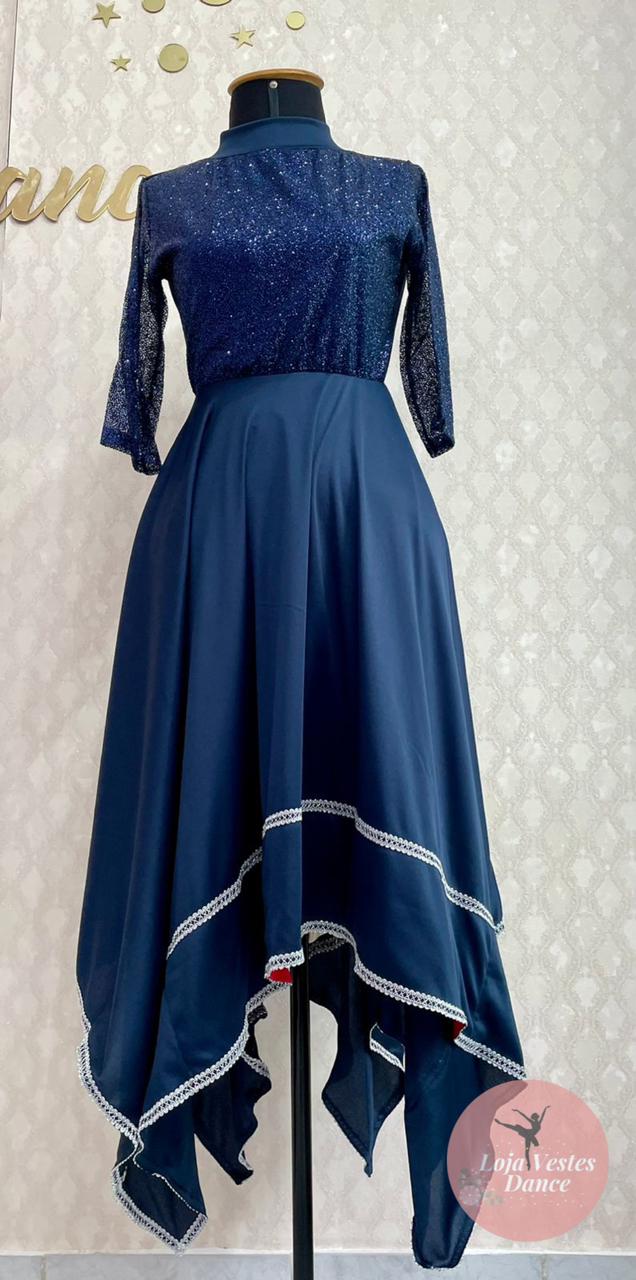 Vestido com busto de tulê exlplosão e saia 4 pontas de helancae detalhes de aviamento
