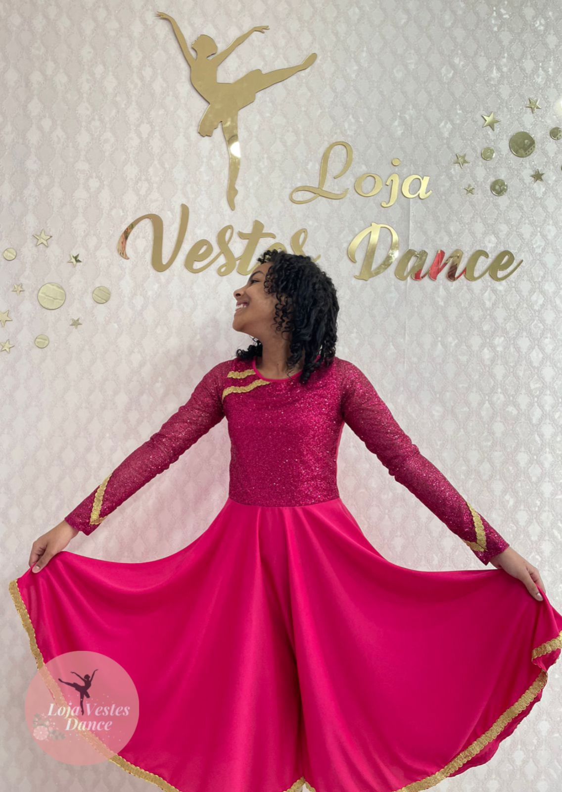 Rosa pink c/aviamento dourado.