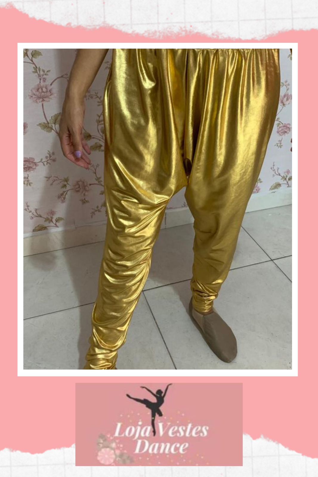 Saruel de malha metalizada dourada.