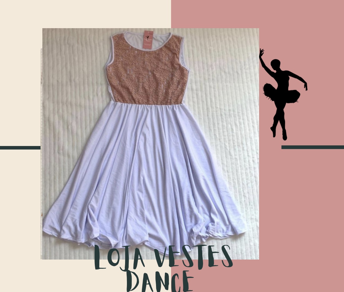 Vestido godê. Saia e busto de helanca com renda na frente.