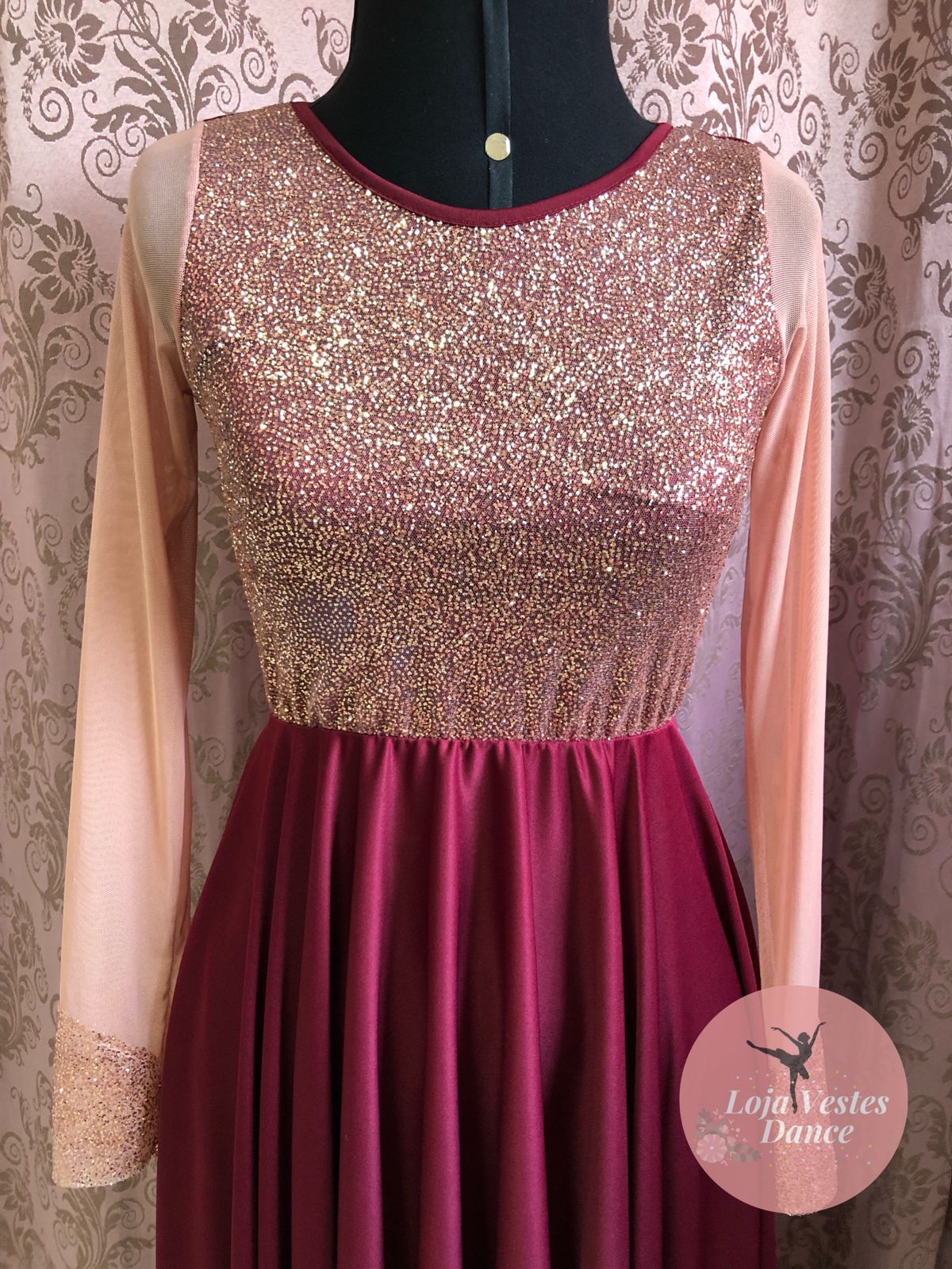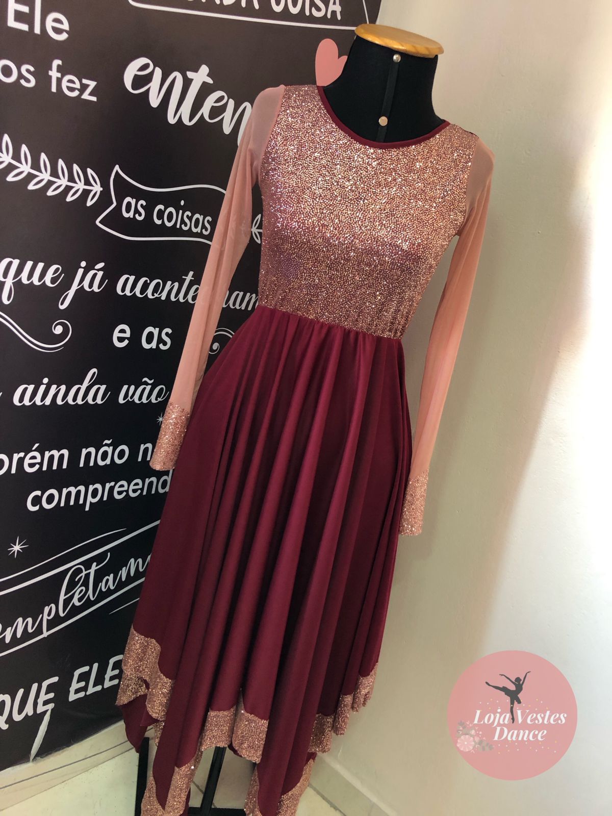 Cores da foto: Busto vinho, saia vinho, tule cheio rosê, tule ilusion rosê.