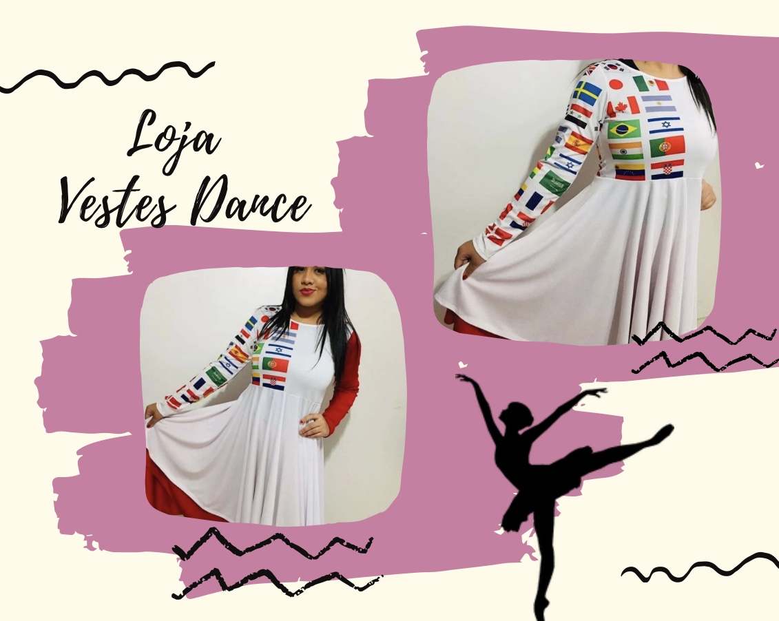 Vestido de helanca com estampa de bandeiras.