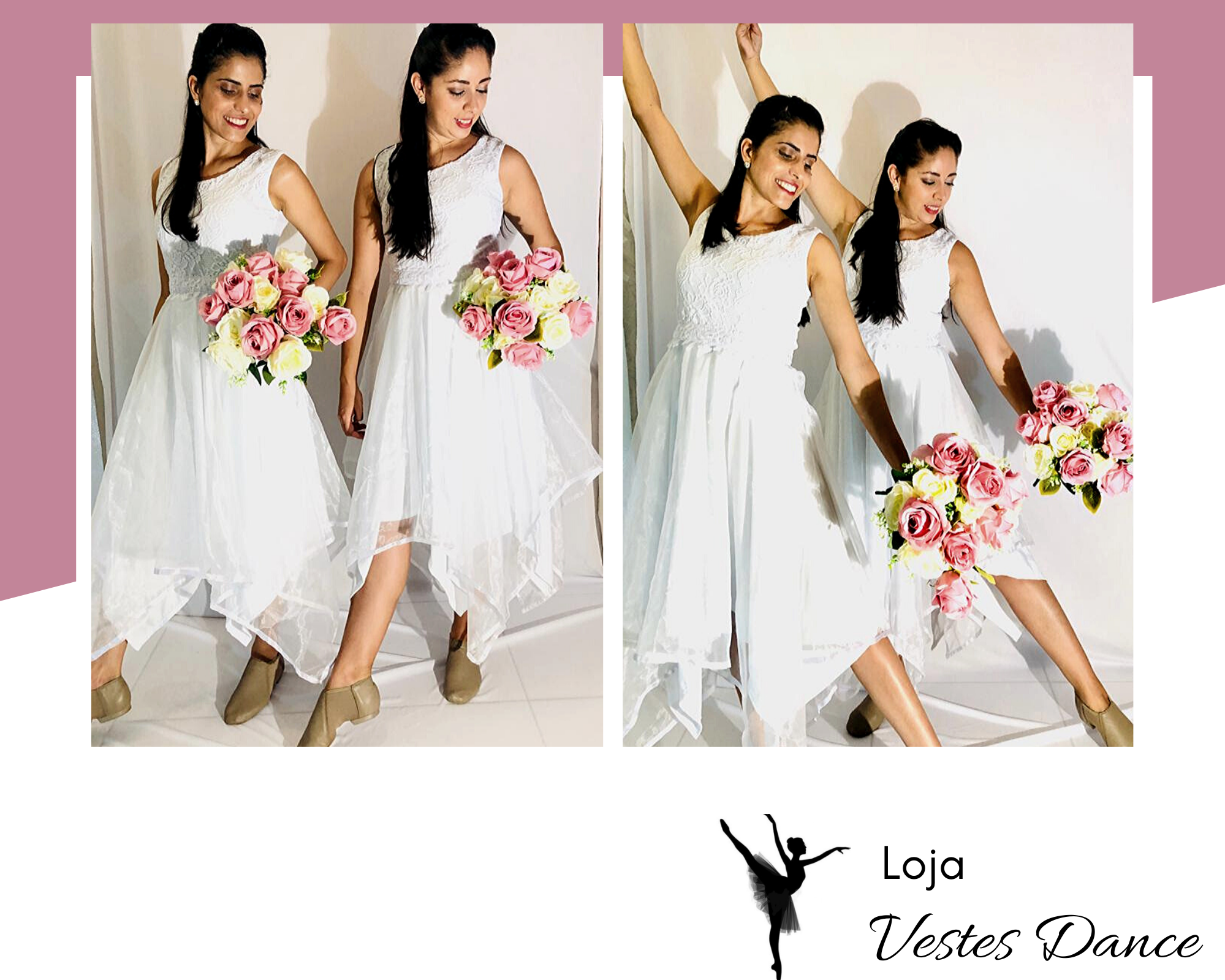 Vestido de Helanca com busto de renda e saia de organza/ A calça não está incluso no valor do Figurino.