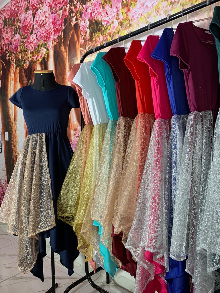 | Cores do Vestido | Amarelo, Azul Claro, Azul Marinho, Azul Royal, Azul Tifany, Branco, Caramelo, Goiaba, Laranja, Lilás, Marrom, Mostarda, Nude, Pink, Preto, Púrpura/Roxo, Rosa Claro, Rosê, Verde Bandeira, Verde Escuro, Vermelho, Vinho, Terra cota |