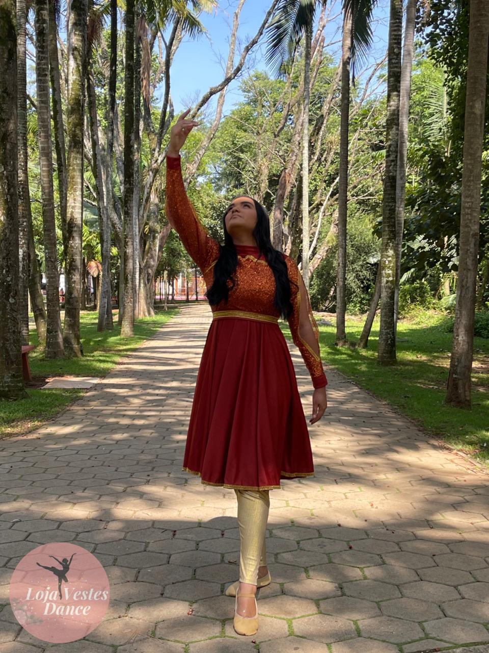 Vestido de helanca com tulê cheio e detalhes de aviamento.
